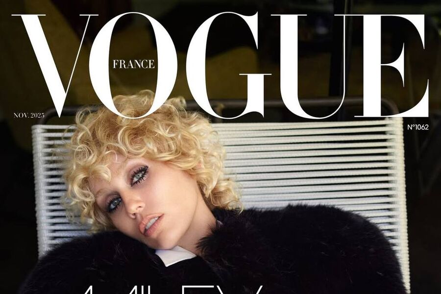 32-летняя Майли Сайрус стала героиней нового выпуска французского журнала Vogue. На обложке певица предстала в парике с короткими кудрявыми волосами и макияжем с черной подводкой, тушью и нюдовой помадой. Поп-исполнительница позировала в черной короткой шубе, белой рубашке и молочной атласной юбке. Фотосессия проходила в отеле Château Marmont в Лос-Анджелесе. Автором съемки выступил фотограф Марио Сорренти.