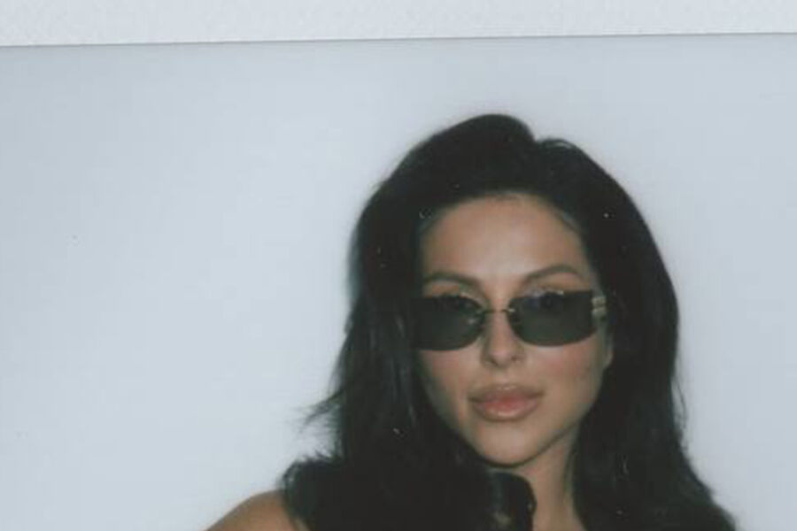 Нюша показала фигуру в розовом корсете с глубоким декольте и прямых брюках. Образ дополнили солнцезащитные очки. Волосы певице уложили мягкими прядями и сделали вечерний макияж.