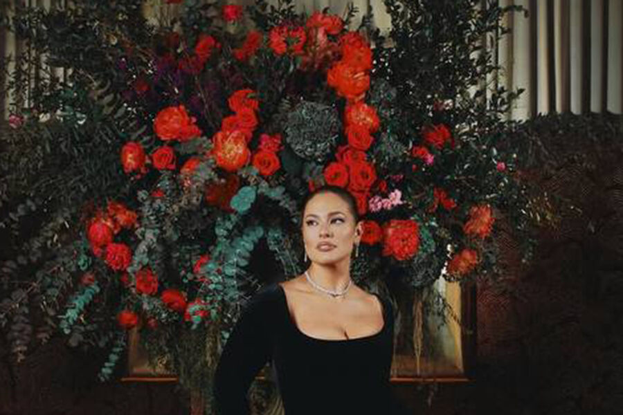 Модель Эшли Грэм снялась в бархатном платье с глубоким декольте