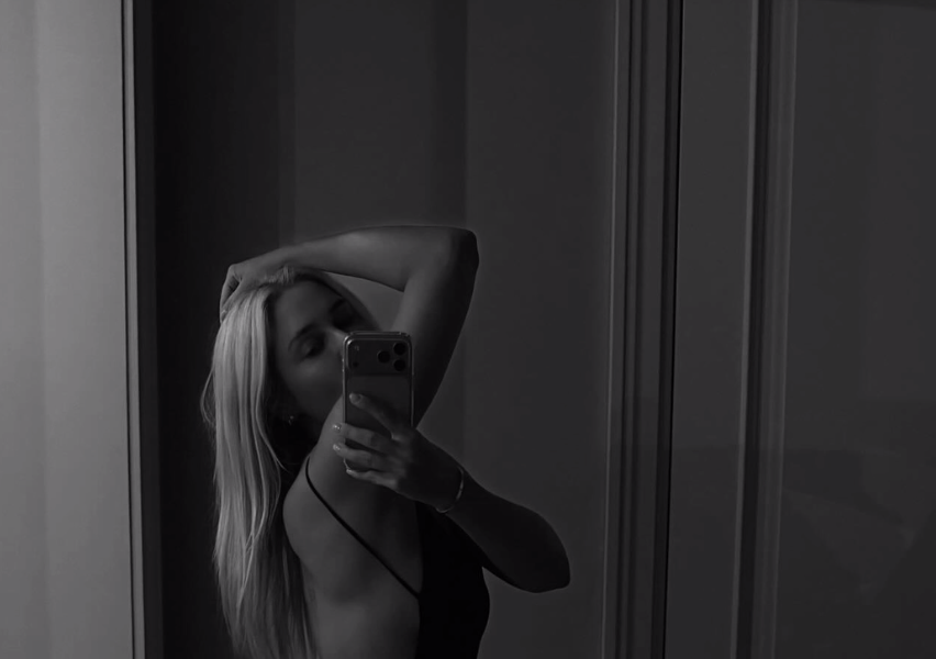 42-летняя Наталья Рудова стояла перед зеркалом в обтягивающем мини-платье на бретелях. Актриса не стала надевать бюстгальтер под наряд. Знаменитость позировала с распущенными волосами.