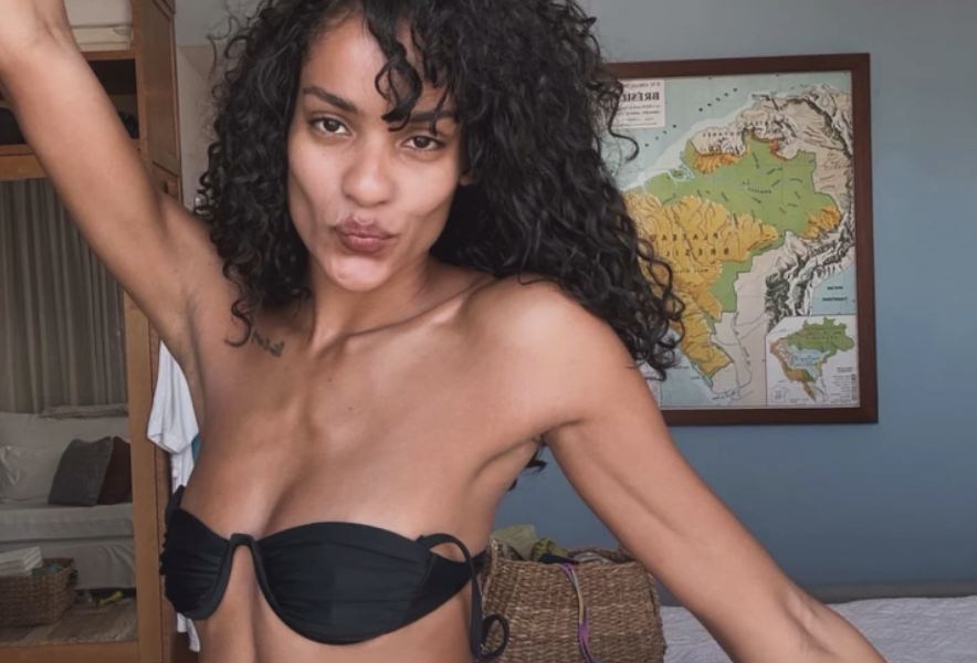 29-летняя Нара Баптиста позировала перед камерой в черном бикини на фоне спальни. Модель была запечатлена с распущенными волосами и без косметики.
