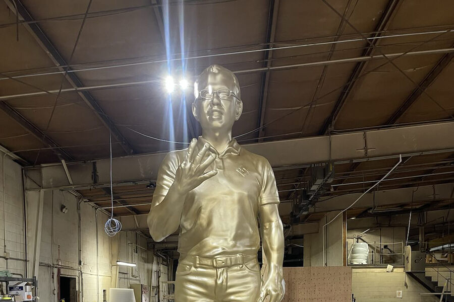 Монумент, изображающий Чжао с его характерным жестом — поднятыми четырьмя пальцами, символизирующими отказ от страха и сомнений, будет выставлен на всеобщее обозрение на несколько часов. В дальнейшем статую планируется передать самому Чжао в качестве подарка или продать с аукциона в пользу его некоммерческого образовательного проекта Giggle Academy.