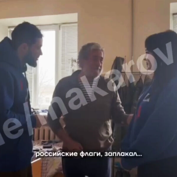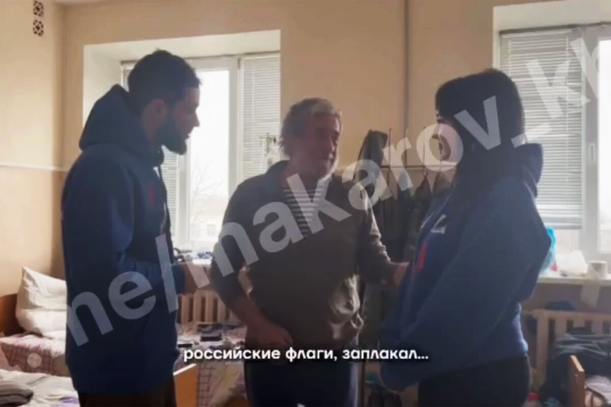 Увидев в городе военнослужащих с российскими флагами, мужчина расплакался.