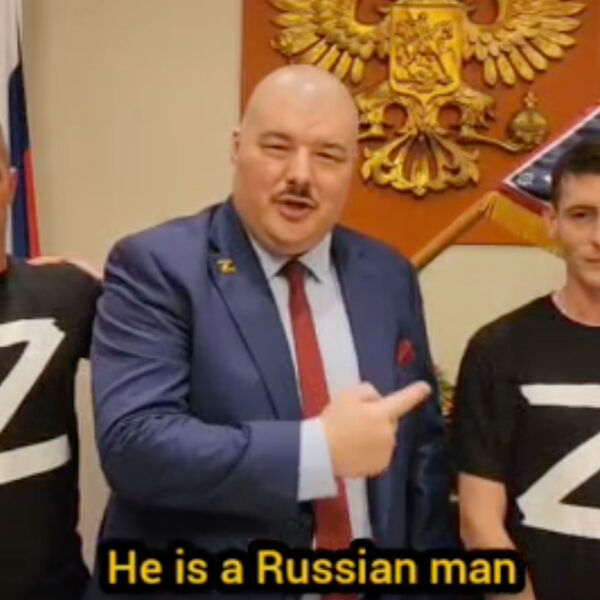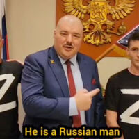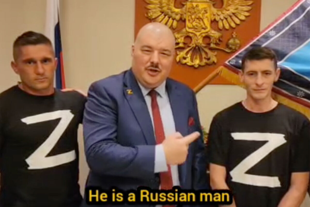Как пишет издание, на кадрах запечатлен австралийский казак Семен Бойков, который представил мужчину в футболке с буквой Z как Ивана Сырского и попросил его сказать «пару слов» о взятии Авдеевки «для украинского телевидения».