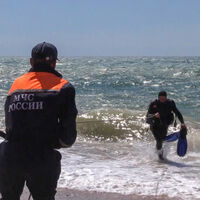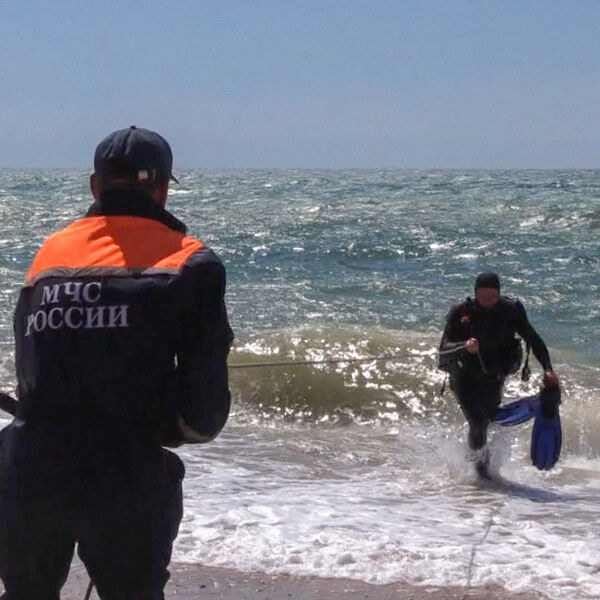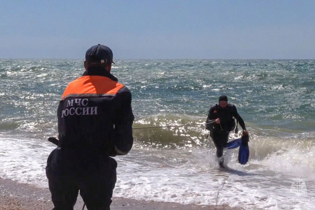 Сотрудники МЧС России во время обследования дна Черного моря на пляже Учкуевка, который подвергся атаке со стороны ВСУ, 27 июня 2024 года
