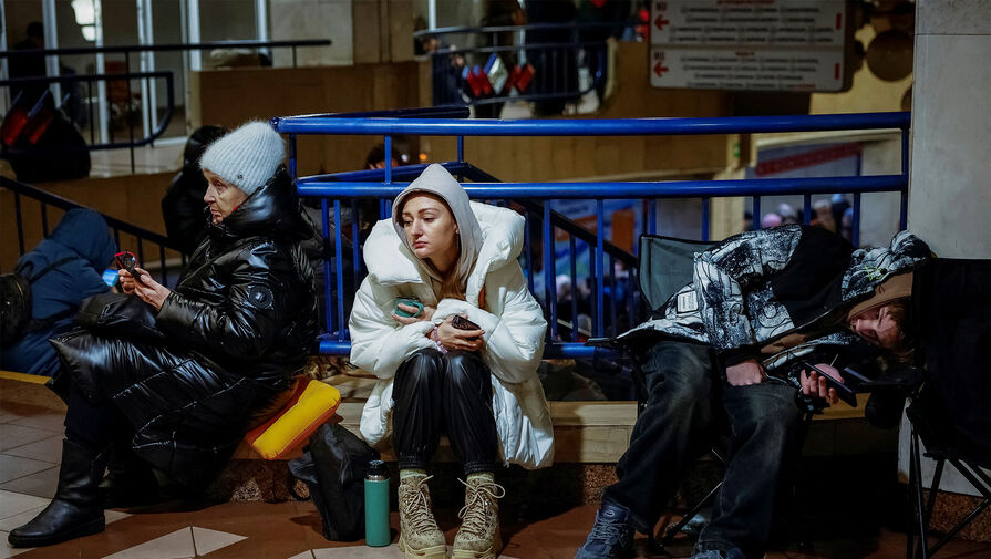 Люди укрываются в метро во время воздушной тревоги, Киев, Украина, 28 ноября 2024 года