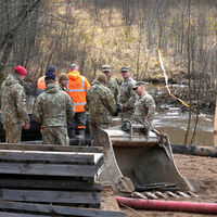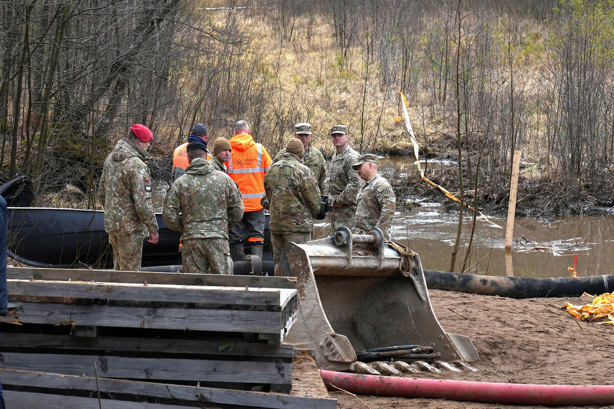 Для того чтобы подобраться к месту затопления, литовские военные начали насыпать земляную дамбу.