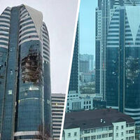 После удара внутри небоскреба произошел пожар. На опубликованных кадрах видны значительные повреждения остекления на нескольких этажах, а также пламя, черный дым и копоть.