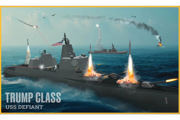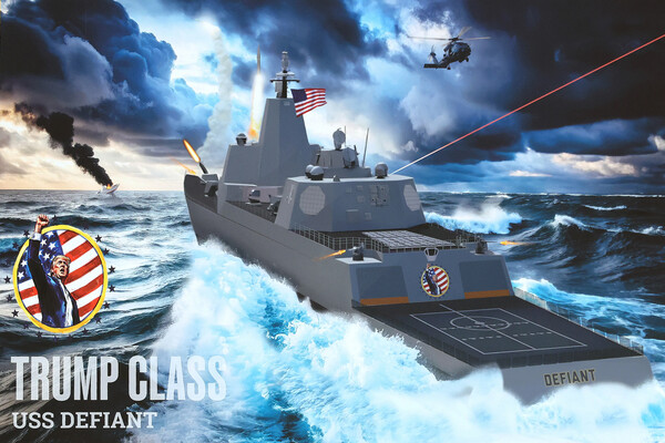 Министр ВМФ Джон Фелан добавил, что «будущий линкор «класса Трамп», USS Defiant будет самым большим, смертоносным, универсальным и красивым военным кораблем в Мировом океане.