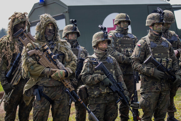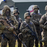 Военнослужащие во время литовско-польских учений вблизи Сувалкского коридора в селе Дирмишкес, Литва, 2024 год