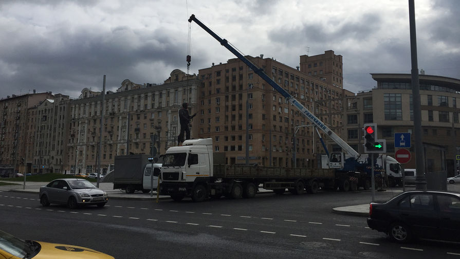 На Садовом кольце в Москве началась установка памятника советскому конструктору Михаилу Калашникову, передает корреспондент «Газеты.Ru».