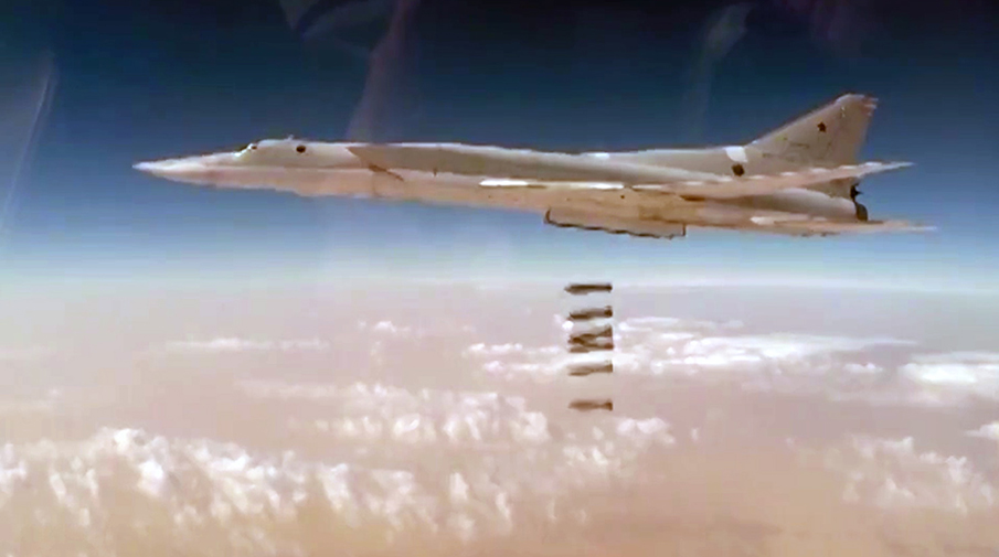 «Шесть дальних бомбардировщиков Ту-22М3 нанесли групповой удар по объектам террористов ИГ в провинции Дейр-эз-Зор. Взлетев с аэродрома на территории Российской Федерации, самолеты поразили опорные пункты и скопление боевиков в долине реки Евфрат», — говорится в сообщении.