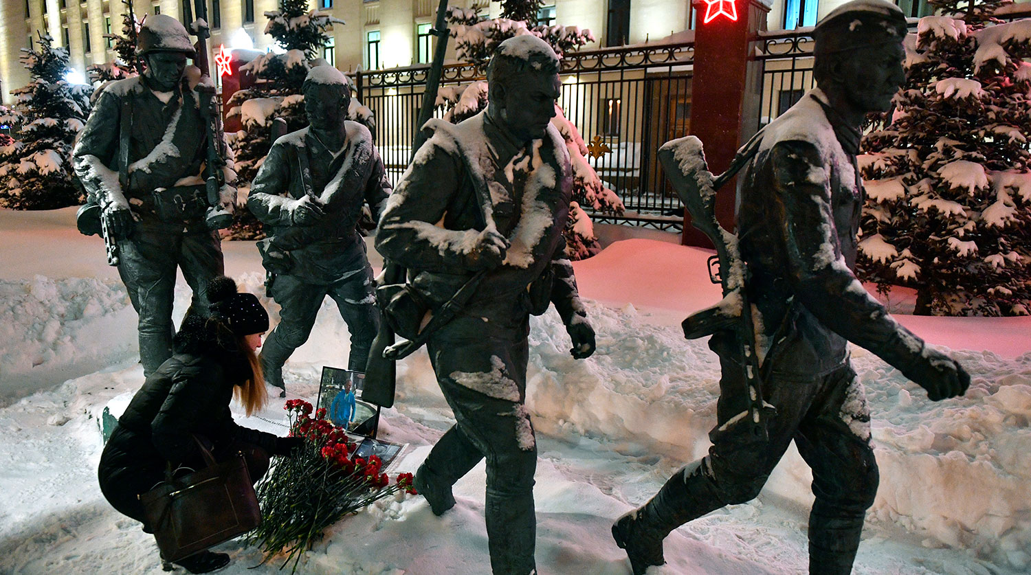 К зданию Министерства обороны в Москве несут цветы в память о погибшем в Сирии летчике Су-25 Романе Филипове, передает РИА «Новости».