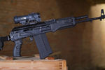 «Оружие выполнено на базе автомата АК103 под патрон 7,62×51 мм с элементами и узлами конструкции автомата АК-12. В настоящий момент идет подготовка к предварительным испытаниям вооружения», — сообщили представители концерна.