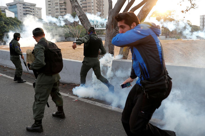 Во время акции протеста венесуэльского оппозиционного лидера Хуана Гуайдо раздалась стрельба, сообщает Reuters со ссылкой на очевидцев.
