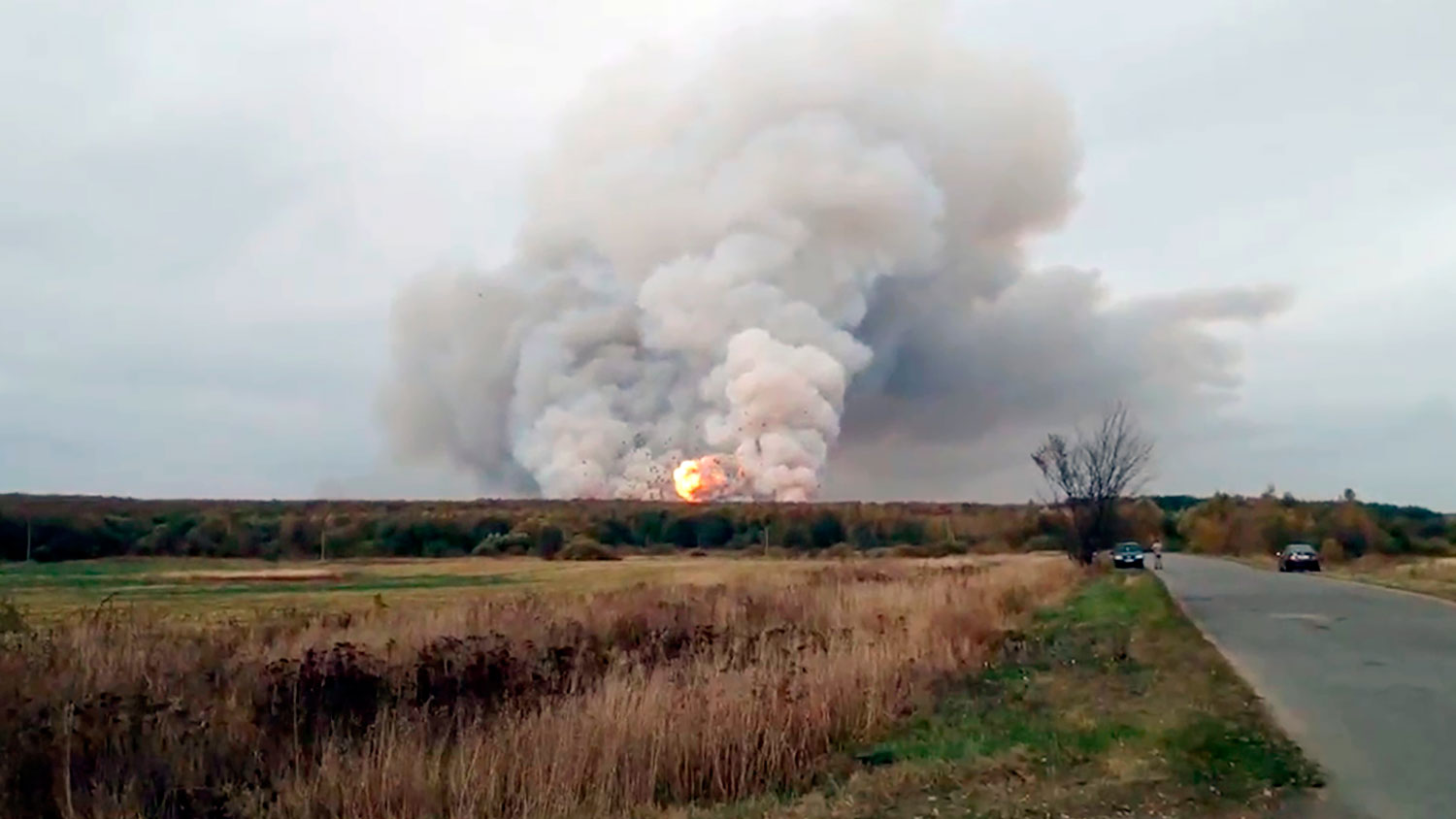 Ранее стало известно, что в районе поселка Желтухино Рязанской области произошел пожар. Огонь проник на территорию бывшего армейского арсенала, из-за чего начали взрываться боеприпасы.