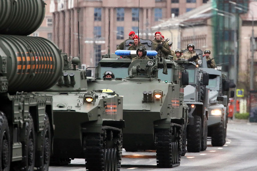 «Войска московского гарнизона для парада в ознаменование 76-й годовщины победы в Великой Отечественной войне построены», — отчитался Салюков.