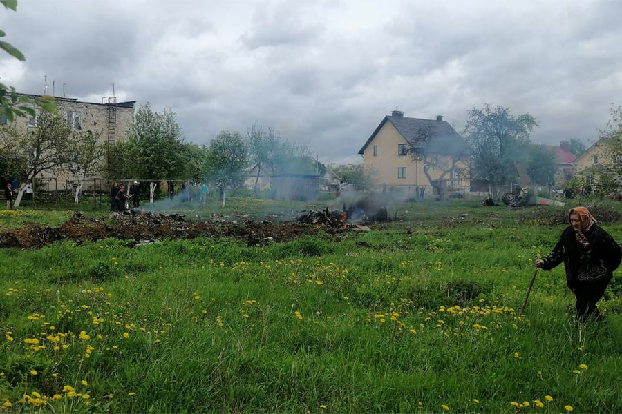 В белорусских Барановичах боевой самолет упал на жилой дом