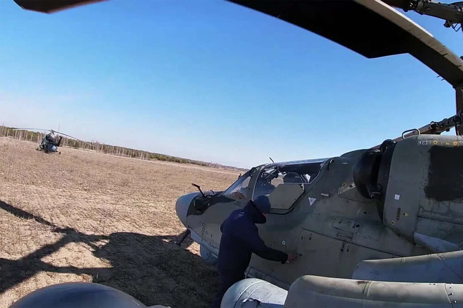 Минобороны России распространило кадры выполнения задач экипажами вертолетов армейской авиации при выполнении задач в рамках военной операции на Украине.
