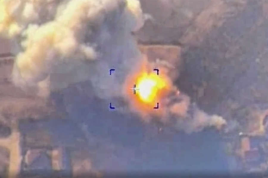 На видеокадрах зафиксировано обнаружение цели с беспилотника и удар высокоточным оружием.