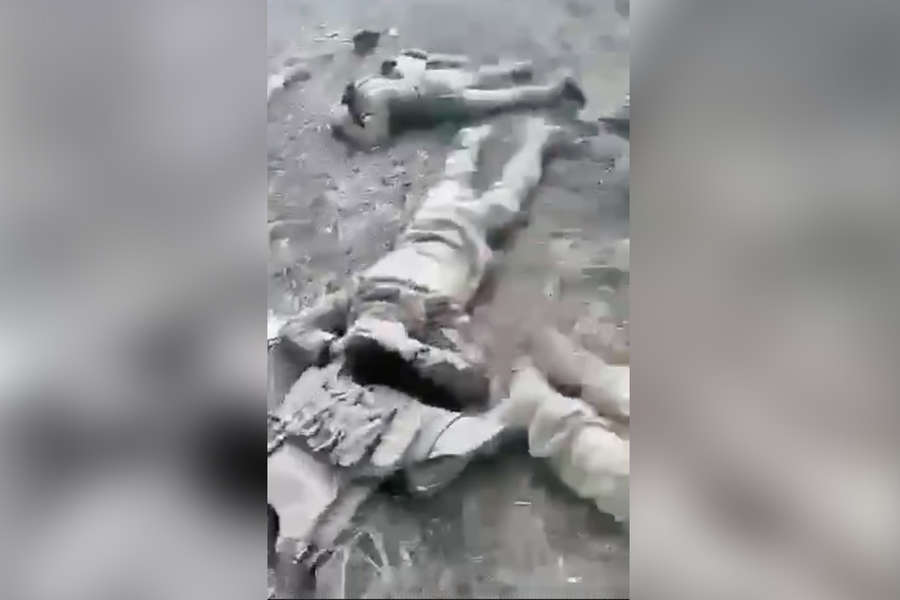 На видео можно увидеть две группы людей, лежащих на земле. Военный, который ведет запись, приказывает им не поднимать головы. Также он просит одну из пленных женщин сделать перевязку военнослужащему, раненному в ногу.