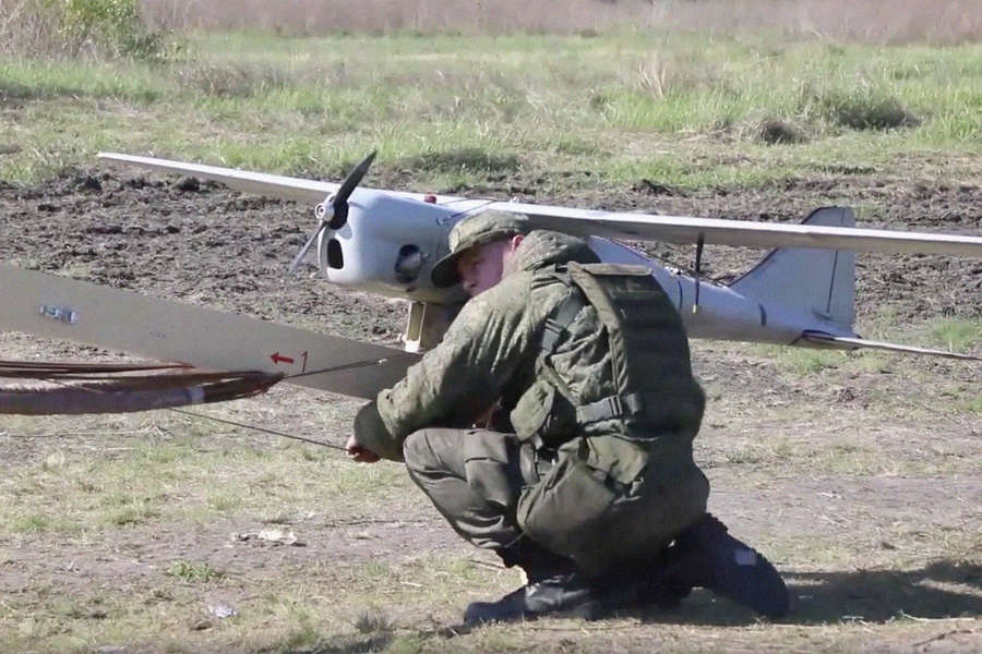 Минобороны разместило ролик, в котором можно увидеть запуск «Орлана» с механической катапульты, а также развертывание и подготовку «Ураганов» к стрельбе по военным объектам Украины.