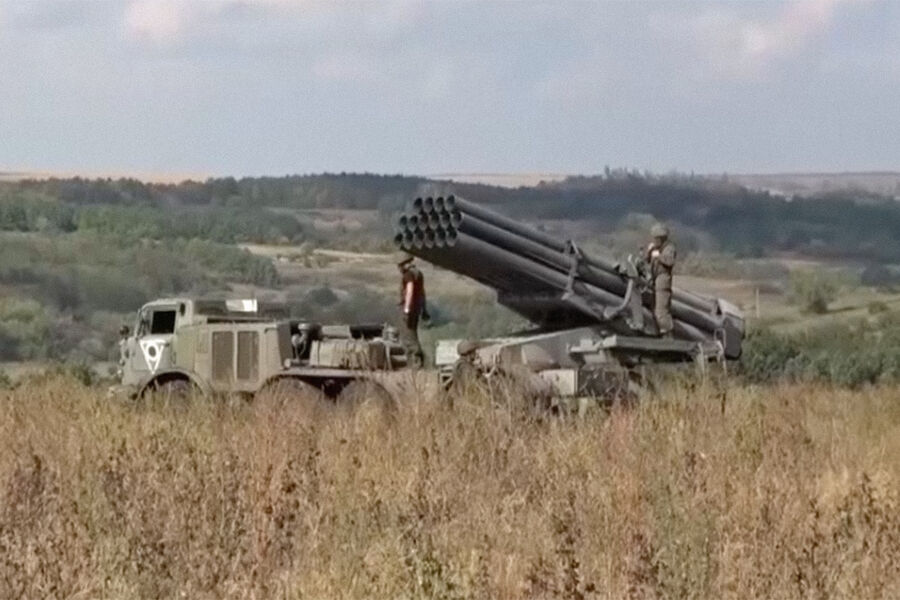 «Боевые машины прибывают на стартовые позиции, проводят развертывание и наносят ракетные удары 220-мм реактивными снарядами по позициям украинских националистов, а также наемников», — отмечает Минобороны РФ.