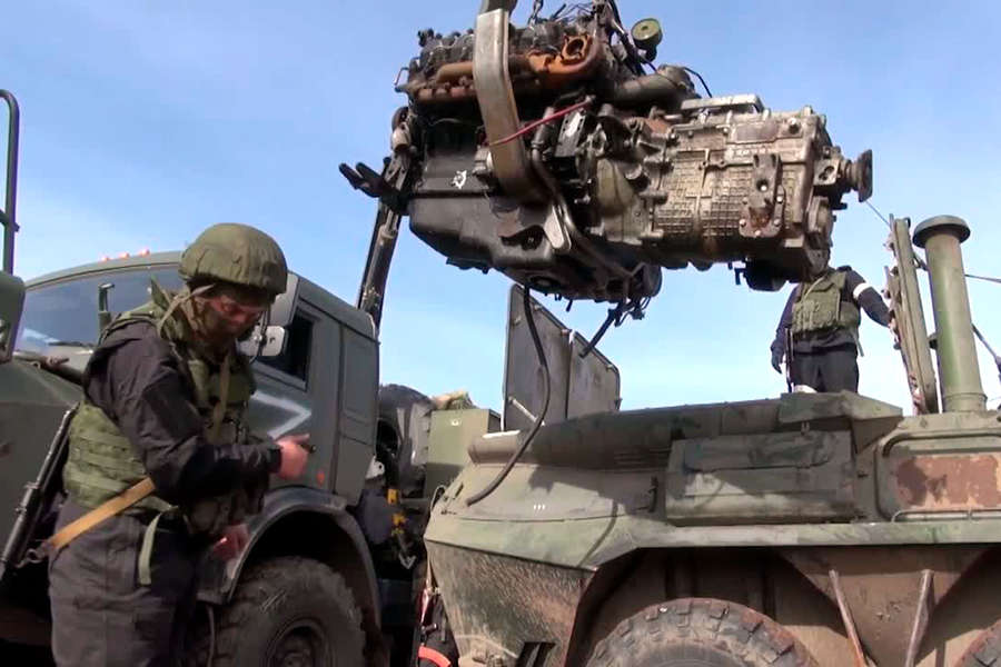 Сообщается, что за одну смену специалисты ремонтных подразделений обслуживают и возвращают в строй по несколько десятков единиц военной техники. Ремонт касается, в основном, силовых установок — двигателей и коробок передач.