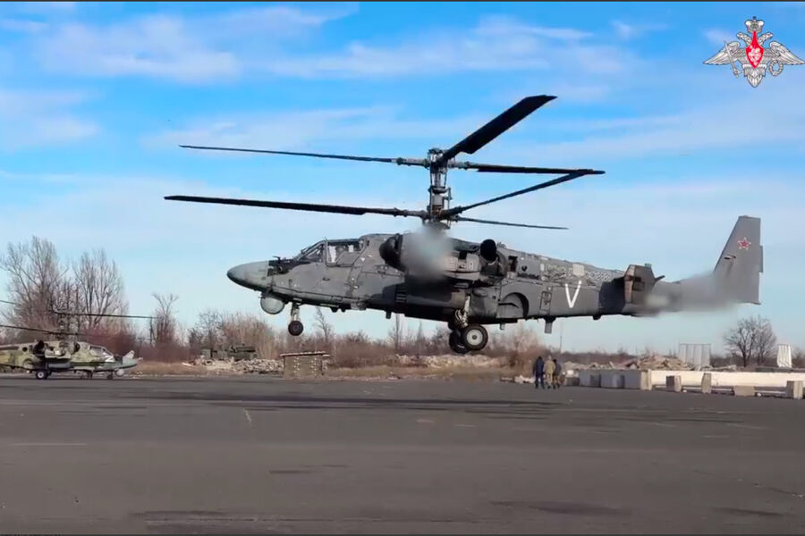 Минобороны России показало кадры применения ударных вертолетов Ка-52 и Ми-24 в ходе специальной военной операции на Украине. Видео размещено в официальном Telegram-канале российского военного ведомства.