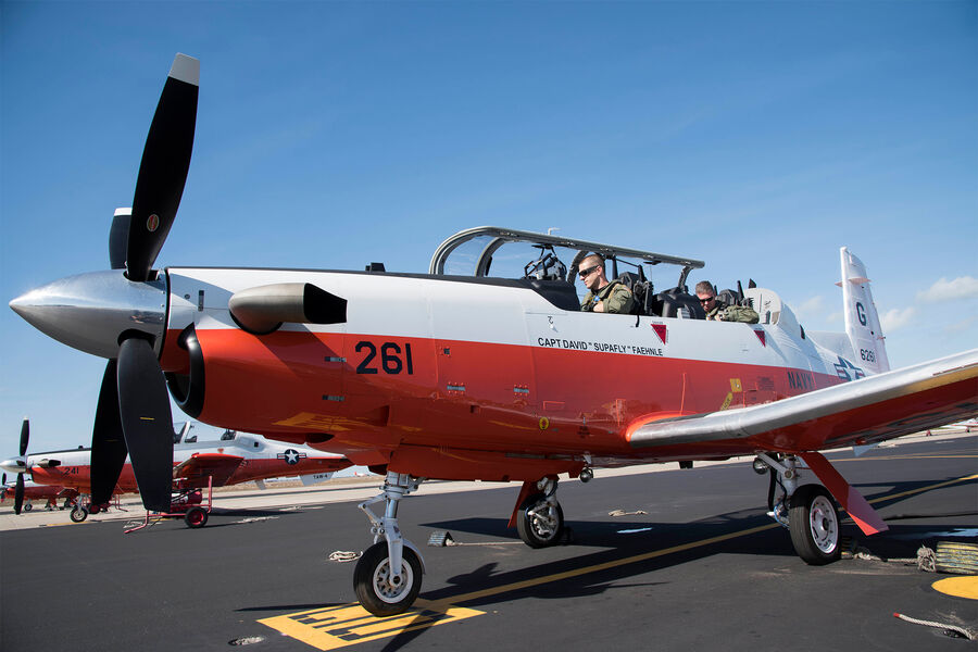 T-6B Texan II — двухместный турбовинтовой учебно-тренировочный самолет, используемый для обучения пилотов ВМС и Корпуса морской пехоты в летных школах.