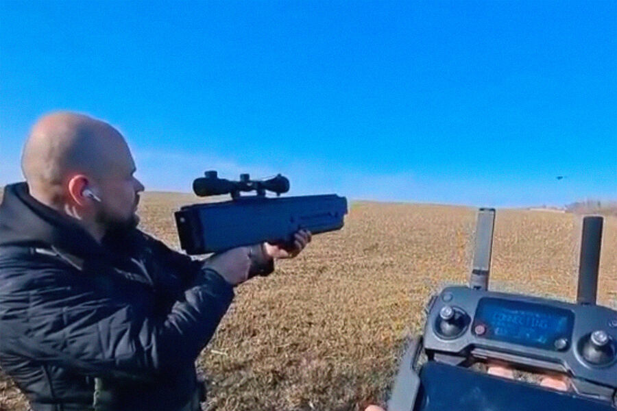 Противодронное ружье «Гарпия» работает от литийионного аккумулятора. Эффективная дальность действия оружия — от 500 метров до 2 километров.