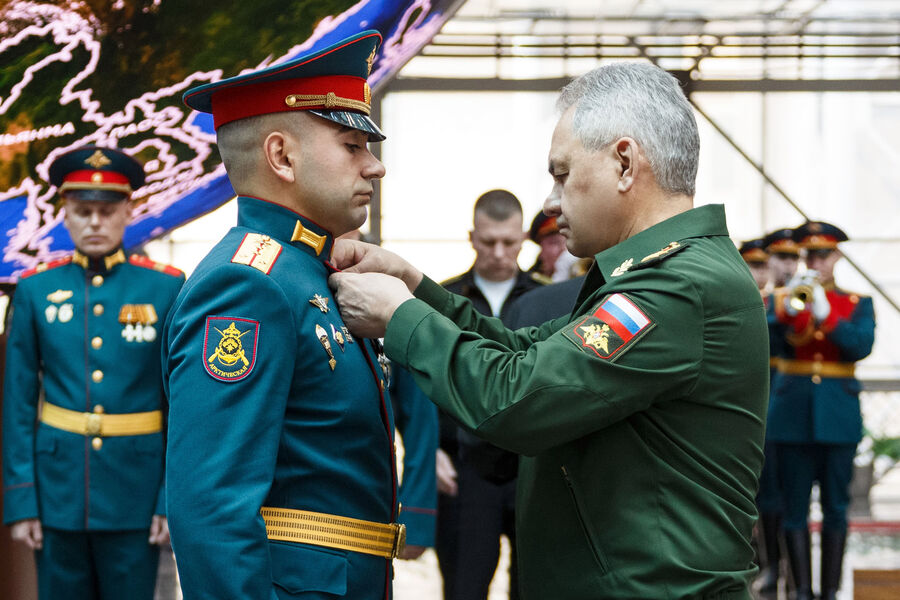 Министр обороны РФ Сергей Шойгу вручил государственные награды российским военнослужащим, участникам специальной военной операции на Украине. Кадры с церемонии награждения публикует в Telegram российское Минобороны.