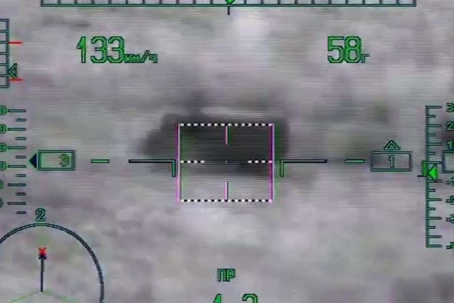 На видео, которое показало ведомство, экипаж разведывательно-ударного вертолета Ка-52 нанес удар управляемой ракетой по выдвигающимся боевым машинам ВСУ. По заявлению МО РФ, в результате прямого попадания бронемашина была уничтожена. На видео попал пуск ракеты и взрыв.
