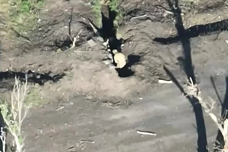 На видео показано приближение дрона к позициям ВСУ «от лица» дрона. Далее видно, как беспилотник попадает в окоп и уничтожает двух украинских военнослужащих, «от третьего лица».