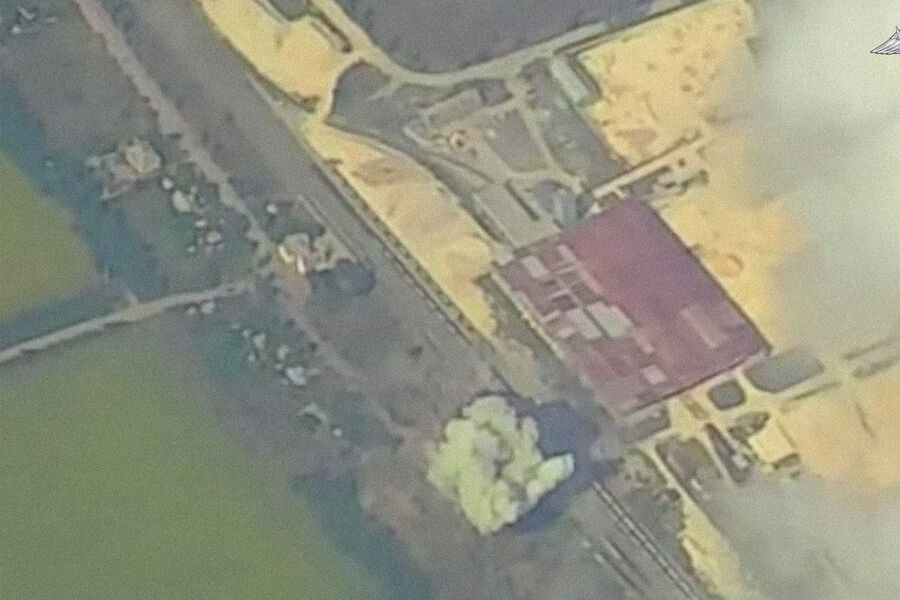 На видео Минобороны показаны кадры с разведывательного беспилотника над железнодорожной станцией, который запечатлел взрыв от попадания ракет.