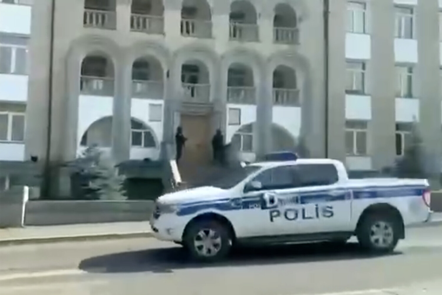 На ролике, опубликованном каналом, видны азербайджанские полицейские машины и военные Азербайджана у входа в здание.