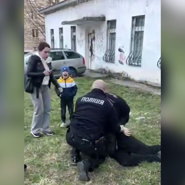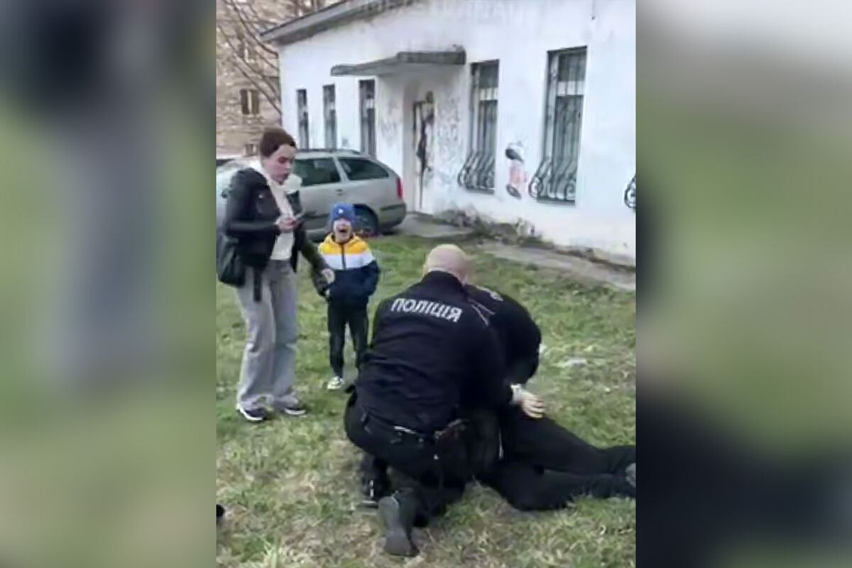 В городе Хмельницкий на западе Украины полицейские мобилизовали мужчину на улице на глазах жены и сына. Видео опубликовала «Страна.ua».