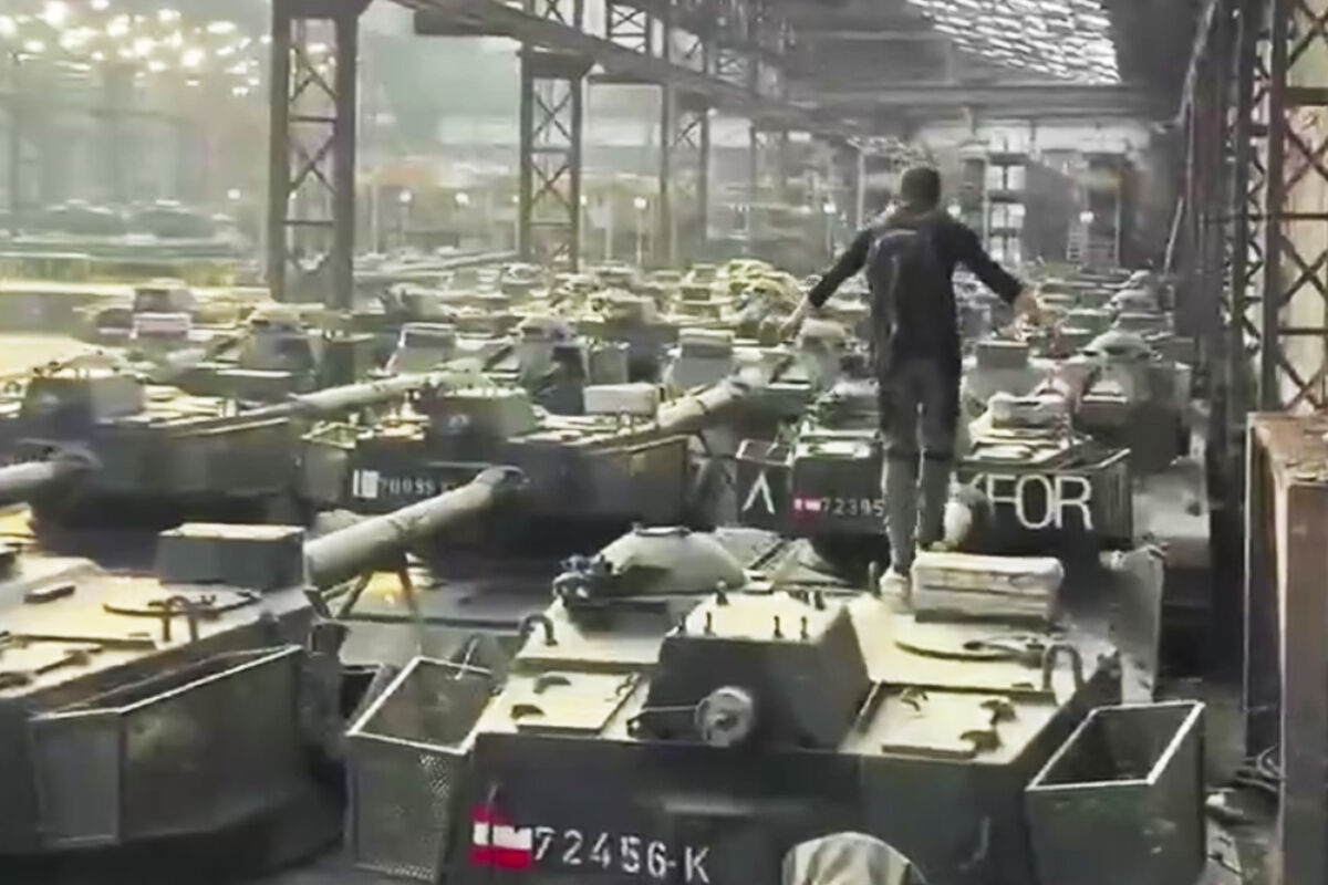 На кадры попало большое помещение с военной бронетехникой. В частности, на складе стояли нидерландские бронетранспортеры YPR-765, немецкие зенитные самоходные установки Gepard и австрийские 105-мм легкие танки SK-105 Kürassier.