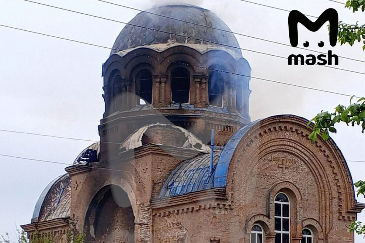 По информации канала, это произошло 6 мая. Во время минометного обстрела одна из мин попала в притворную часть храма, из-за чего там произошло возгорание.