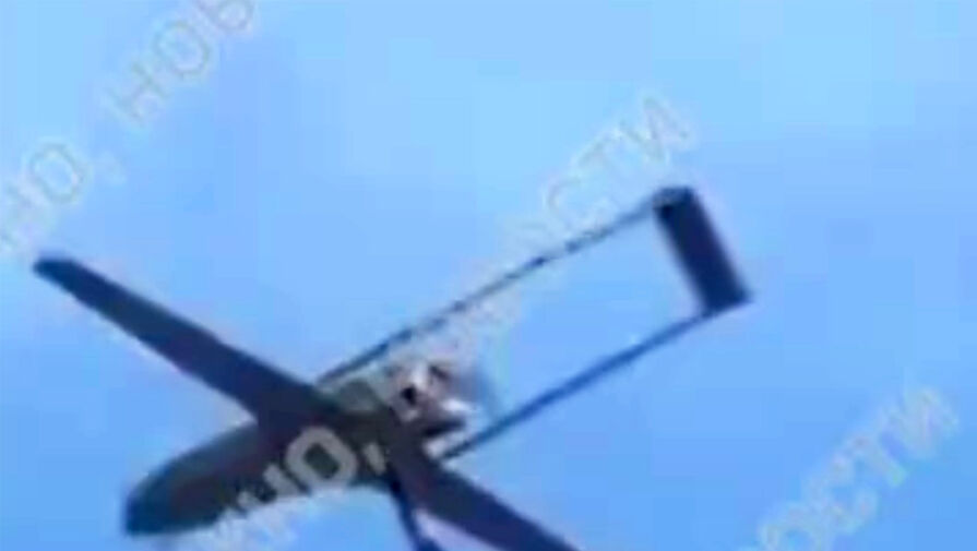 На ролике, снятом местными жителями, можно увидеть в небе белый беспилотник самолетного типа и услышать его жужжание. Определить, насколько низко он летит, невозможно.