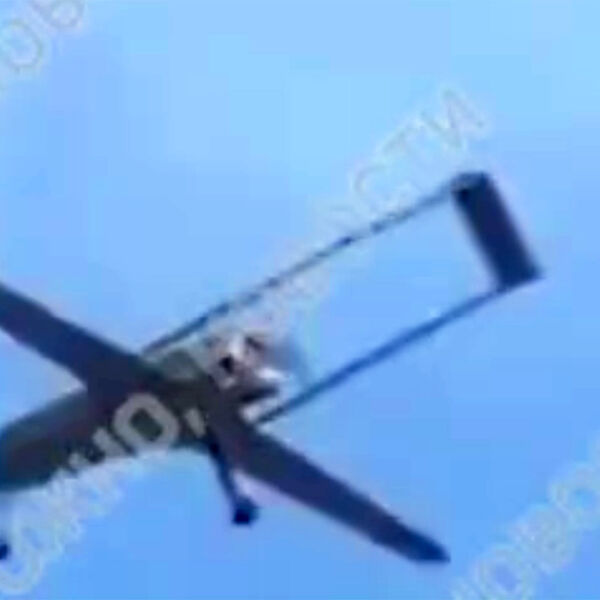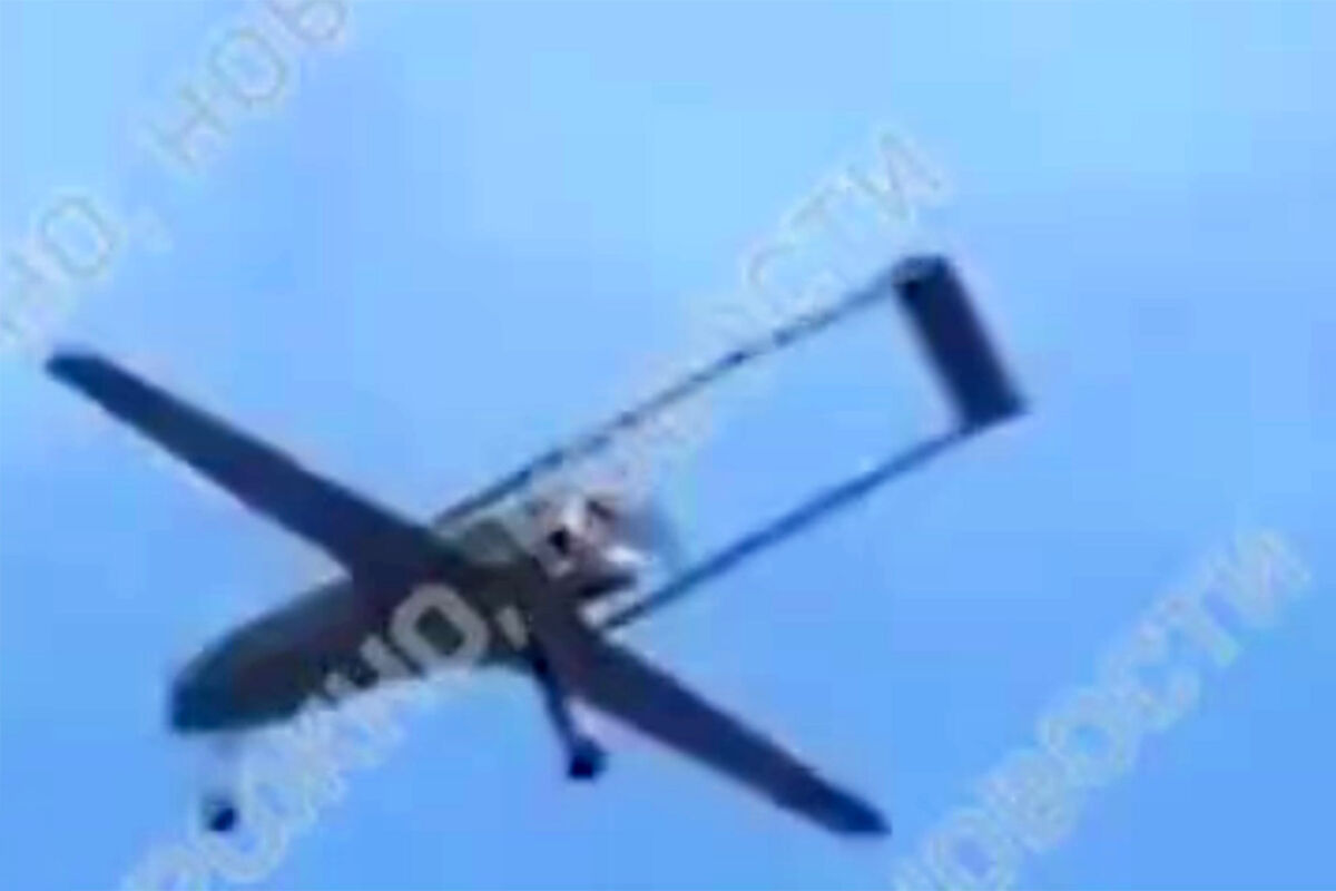 На ролике, снятом местными жителями, можно увидеть в небе белый беспилотник самолетного типа и услышать его жужжание. Определить, насколько низко он летит, невозможно.