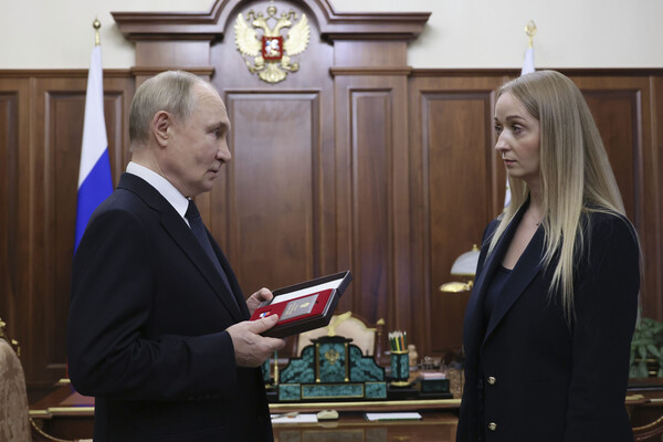 Президент Владимир Путин передал медаль «Золотая Звезда» вдове погибшего в зоне СВО генерал-майора Михаила Гудкова. Видео опубликовано в Telegram-канале Кремля.