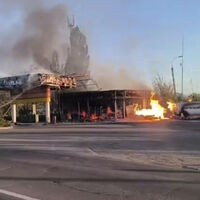Прямое попадание беспилотника в АЗС произошло около 17:00. До этого в городе Первомайск на западе ЛНР при налете беспилотника два местных жителя получили несовместимые с жизнью травмы. Из-за атаки БПЛА тоже загорелся наземный резервуар с пропаном на автозаправочной станции. 10 пожарным при помощи двух единиц техники удалось локализовать возгорание. Огонь уничтожил два легковых автомобиля и повредил административное здание.