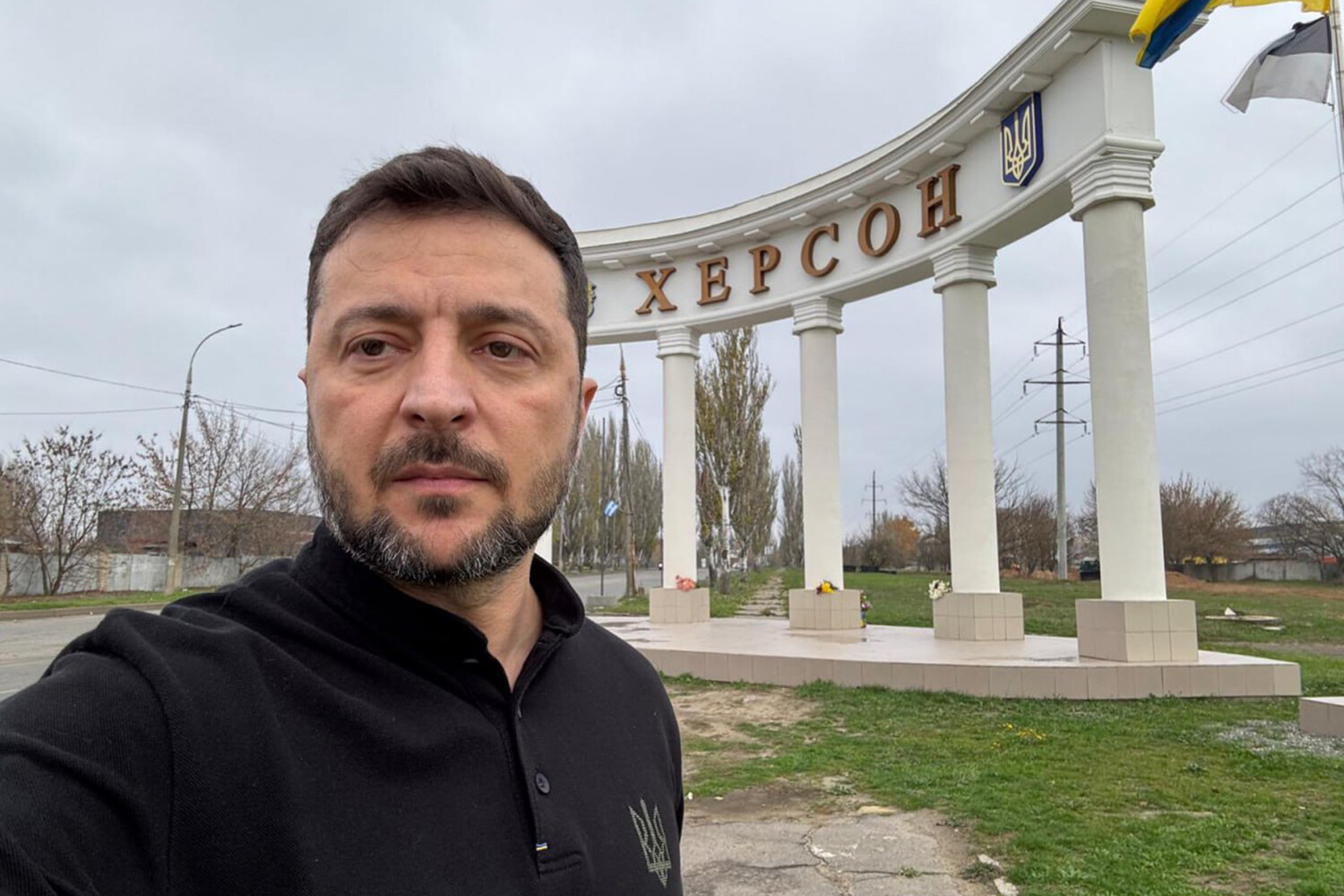Зеленский посетил находящийся под контролем ВСУ город Херсон 11 ноября. Он опубликовал соответствующую фотографию, которую сопроводил националистическим лозунгом о «восстановлении надежды на победу».