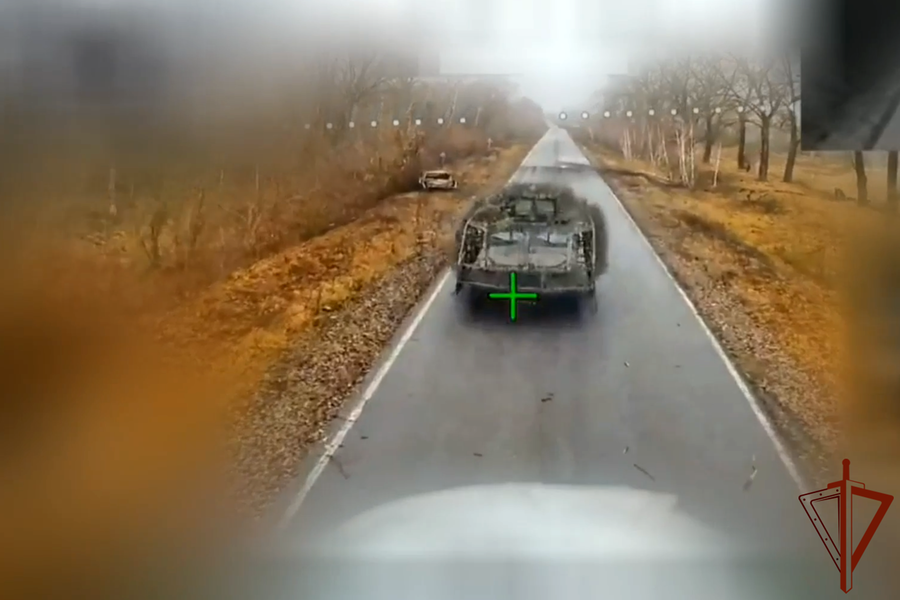 Уточняется, что в ходе воздушной разведки операторы БПЛА обнаружили бронированную машину «Козак» ВСУ. На обнародованных кадрах видно, как российский дрон-камикадзе уничтожает цель, что позднее было подтверждено кадрами объективного контроля.
