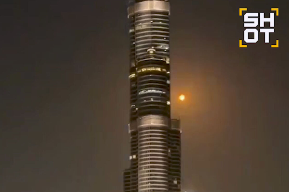 Беспилотник иранских войск сбили рядом с башней Бурдж-Халифа в Дубае. Кадры публикует Telegram-канал SHOT.