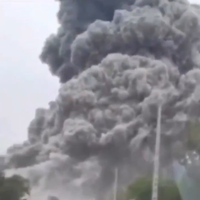 На кадрах с места событий видно, что после взрыва в небе над городом поднялась стена черного дыма и пыли.