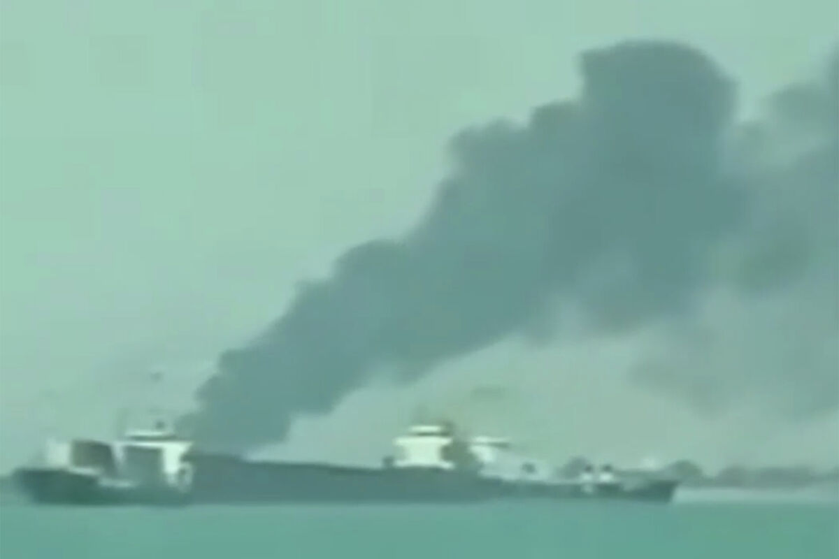 СМИ показали кадры сильного задымления над судном в порту Ирана