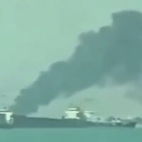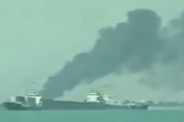 RT: появилось видео дымящегося, предположительно, иранского судна после удара