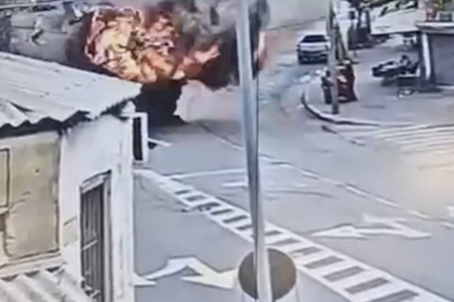 Израильская полиция показала видеозапись падения кассетного боеприпаса рядом с людьми в Тель-Авиве. Запись, сделанная уличной камерой видеонаблюдения, опубликована в Telegram-канале пресс-службы ведомства.